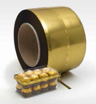 Reels for automatic machines, developed for different industrial purposes. Made with BOPP film from 25 μm to 50 μm. Heights between 6mm and 38mm, the lengths ranging from 1ooo meters to 2oooo meters. Spooled on internal cores from 50mm to 180mm of height with internal diameter of 76mm and 152mm. The material can be realized on mono film BOPP or Laminated with with other materials as Pet in order to have a higher resistance. Available in neutral or with customized prints.