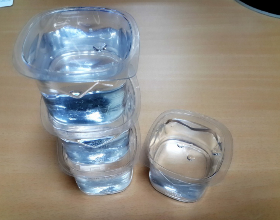 - When producing the cups, there is significant amount of skeletal waste. Currently this waste is a mixed waste of foil and PET. This waste has very little value. When clear lid is used, the skeletal waste becomes 100% PET and can be sold as PET scrap. This scrap has high value. There should therefore be a significant income stream from this skeletal waste.