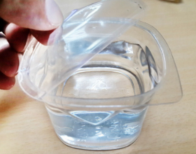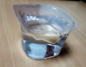 - Using a clear film highlights the pure nature of the water cup with the production of a more elegant looking cup. It does not make sense to have a glass clear APET cup with clear water in it and then to lid it with a thick aluminum opaque lid. The whole aesthetics of the clear cup is compromised.